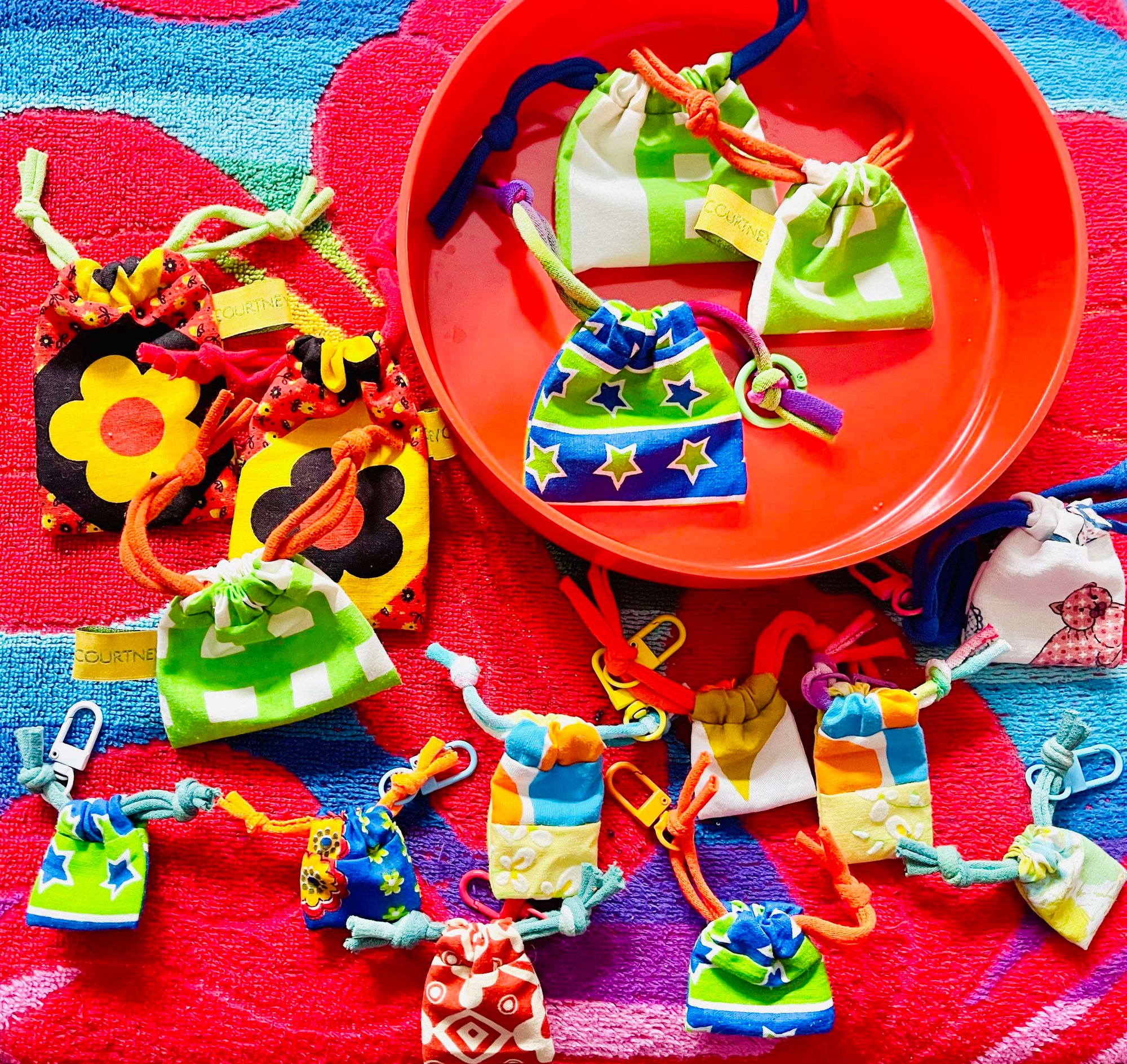 BLIND BAGS by COURTNEYCOURTNEY vintage fabric linen drawstring pouch mini miniature small