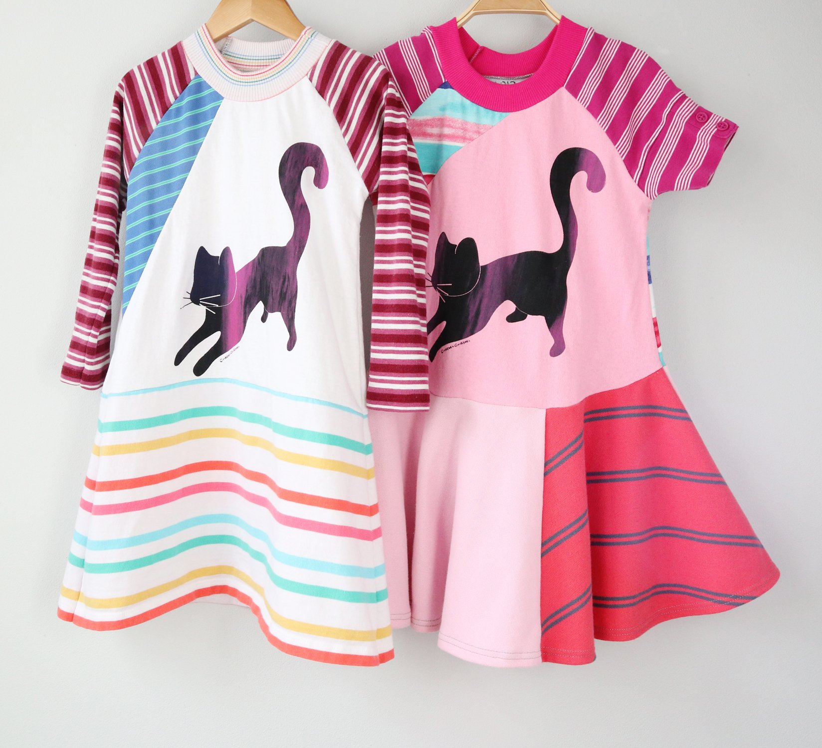 stripes meow kitty cat kitten 4T handprinted longsleeved tunic courtneycourtney dress