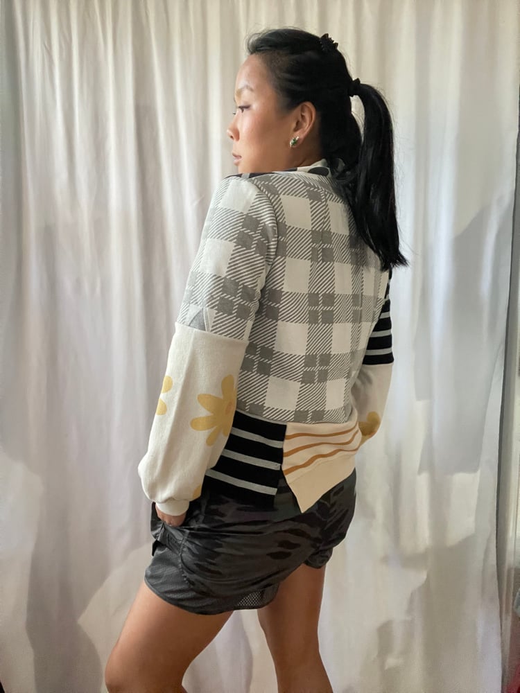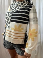 yellow flower hearts courtneycourtney adult L large longsleeve patchwork funnel neck sweatshirt